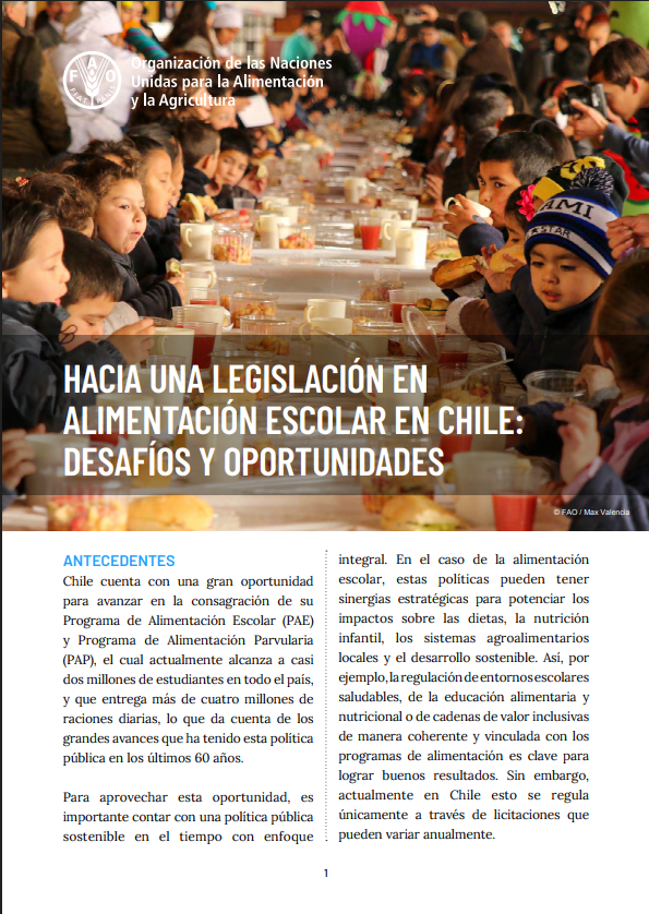 Chile tiene una oportunidad única para fortalecer su Programa de Alimentación Escolar y su Programa de Alimentación para la Primera Infancia, que actualmente atienden a casi dos millones de estudiantes a nivel nacional y entregan más de cuatro millones de comidas al día. Estos programas reflejan seis décadas de importantes avances en políticas públicas.
