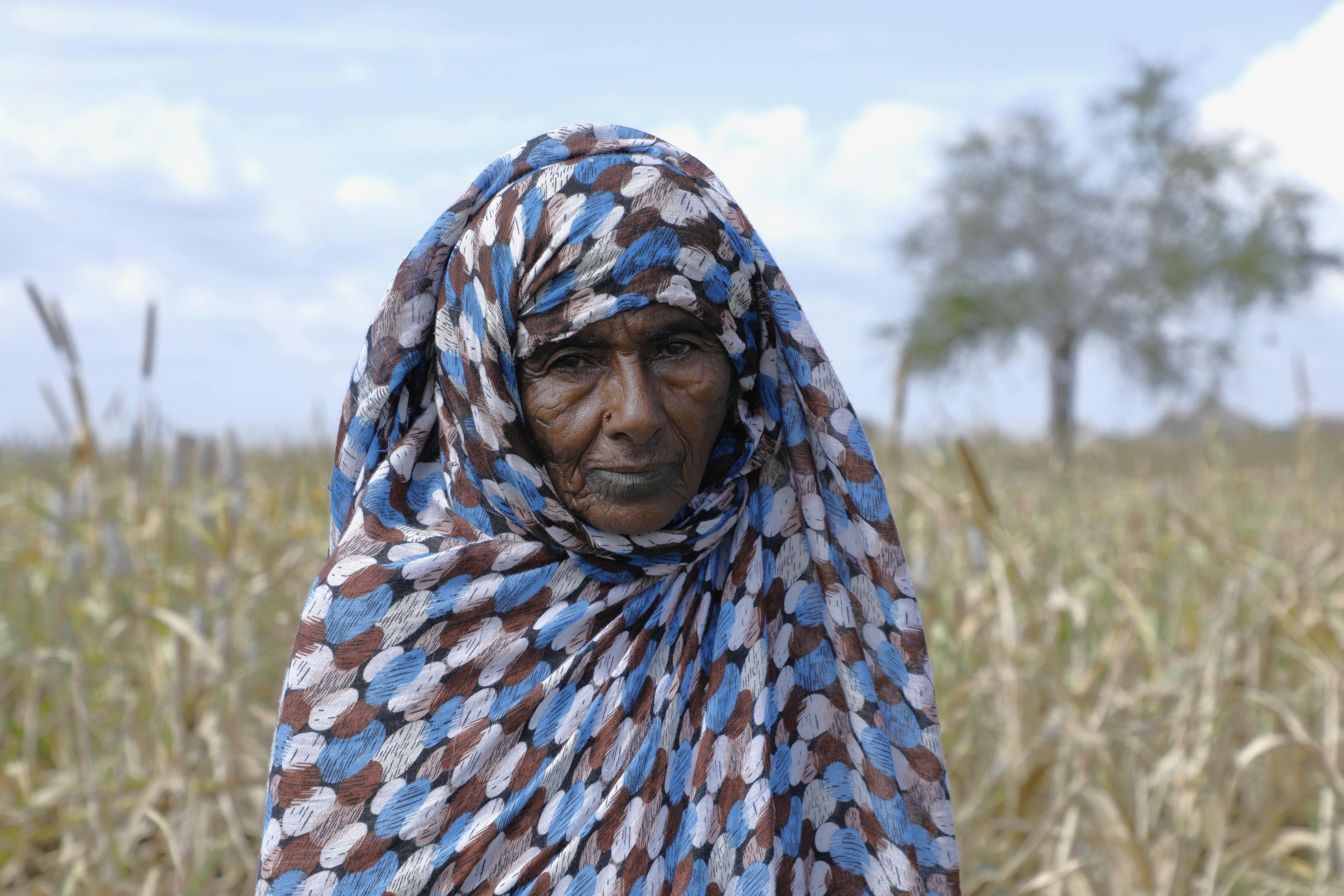 Fatima, agricultrice veuve et mère, espère qu’elle pourra rester sur ses terres pour récolter son sorgho et subvenir aux besoins de sa famille. ©FAO/Khaled Ali.