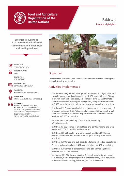 Through its Emergency and Early Recovery Response Plan for 2025, the Food and Agriculture Organization of the United Nations (FAO) requires a total of USD 150 million to assist 550 000 people in rural areas, including small-scale farmers, by providing agricultural production inputs to ensure they can rely on their own food production.