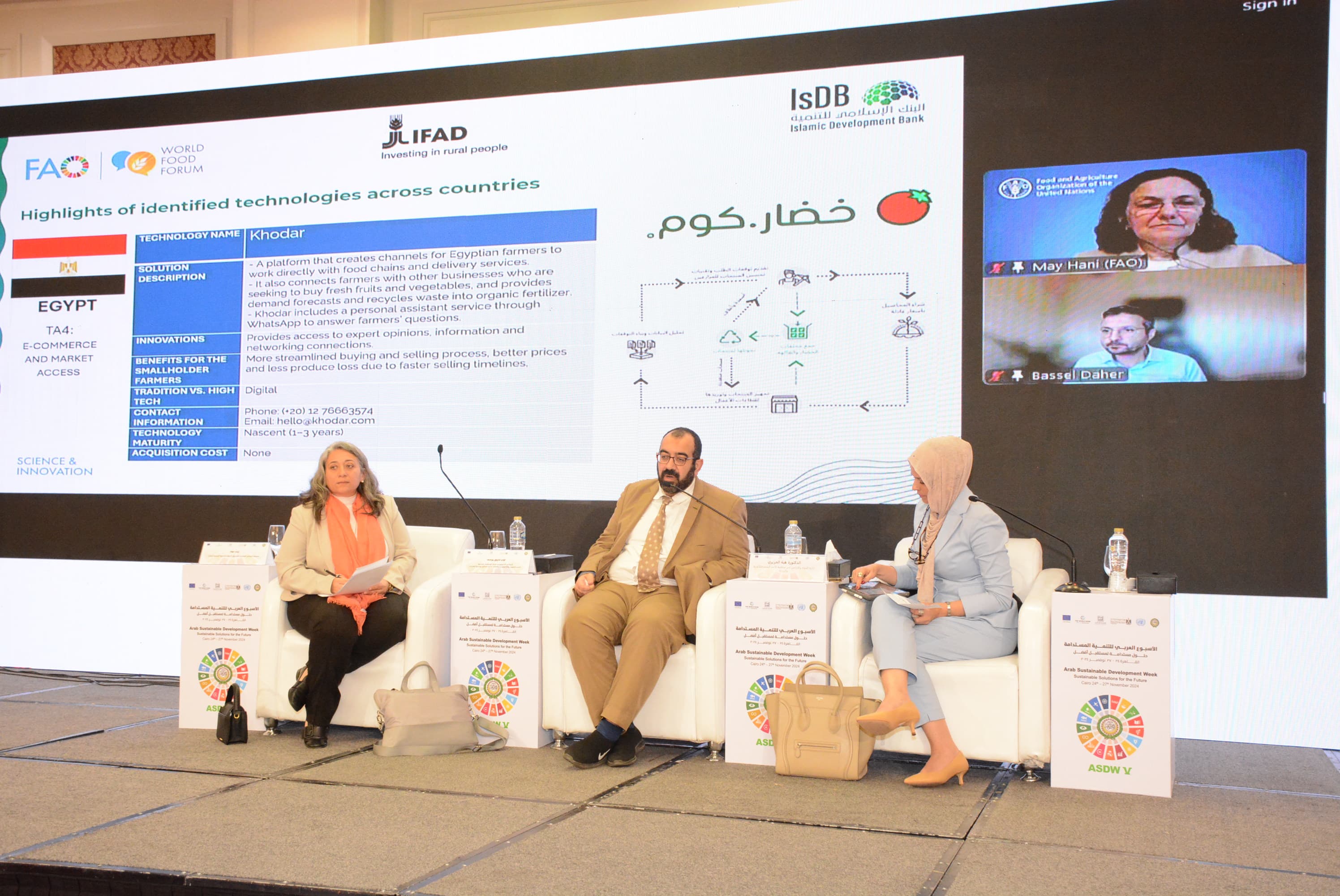 This came during a session held by the three organizations titled “Empowering Smallholder Farmers: Mapping climate-smart technologies and enabling evidence-based technology investments”. This session is under the umbrella of the fifth edition of the Arab Sustainable Development Week (ASDW-V) taking place in Cairo from 24 to 27 November 2024.