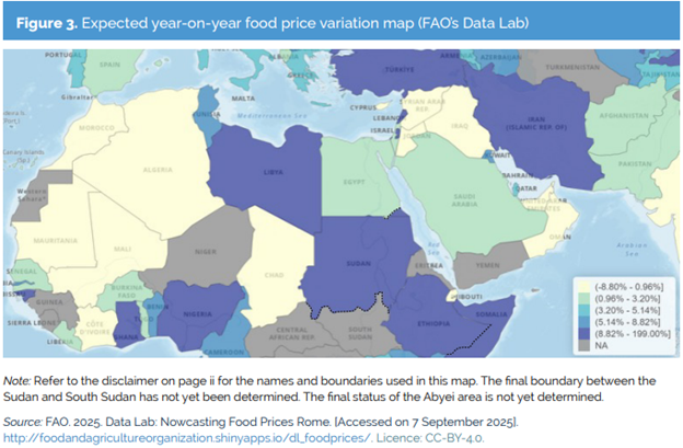Humanitarian concerns are acute: famine conditions have been confirmed in Gaza, with nearly two million people in crisis or worse (IPC Phase 3 and above). Yemen and the Sudan also remain highly vulnerable as conflict, displacement and collapsing markets erode household food security.