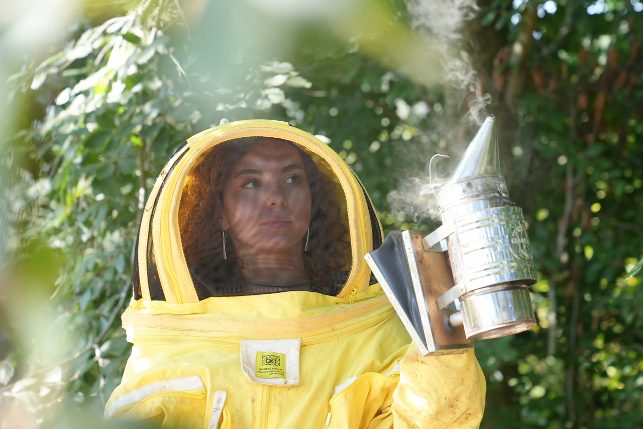 وعندما تصل إلى وجهتها، ترتدي ملابسها الواقية الصفراء الزاهية وتضع قفازات وردية. ثم تشعل عود ثقاب، فيتصاعد دخان من مدخنة معدنية تحملها لتهدئة النحل قبل أن ترفع غطاء الخلية الأولى. وداخل الخلية، تعجّ المستعمرة بدويّ مفعم بالحياة. وتشرع في تفقّد الأطر لمراقبة مستويات العسل، وتتأكّد من وجود الملكة، وتبحث عن أي علامة تدلّ على المرض. وهذه مهام تتطلب صبرًا ومهارة ودقّة في الملاحظة. وتستغرق بعض عمليات الفحص بضع دقائق فقط، في حين يمتد بعضها الآخر إلى نصف ساعة أو أكثر؛ فلكل خلية نحل حياتها الخاصة.